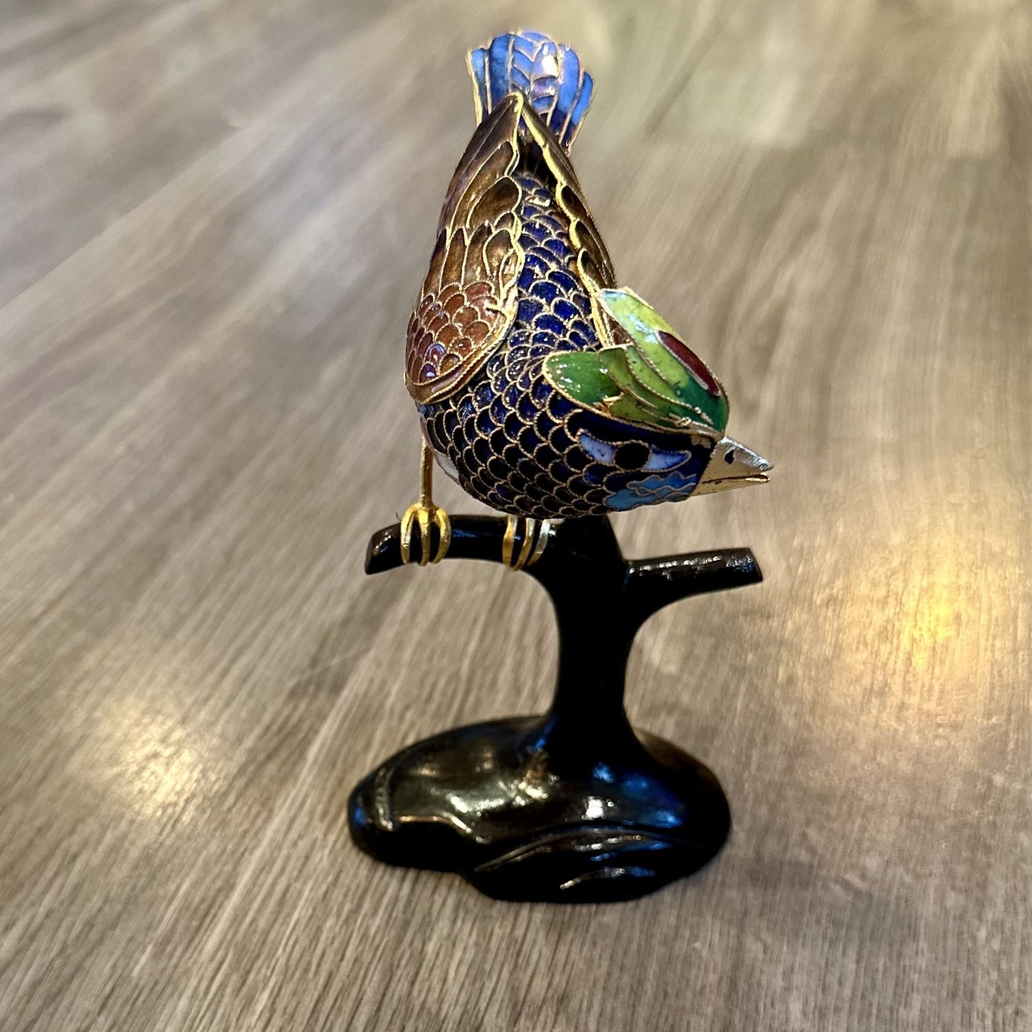 Invite the beauty of ancient craftsmanship into your space with a Vintage Enamel Hand-Painted Chinese Cloisonné Bird on Branch. This exquisite piece captures the essence of traditional artistry, portraying a finely painted bird perched upon a gracefully winding branch. The meticulous handwork and vibrant enamel colors not only showcase the skill of the craftsman but also echo a rich cultural heritage. Add a touch of elegance and history to your decor with this timeless symbol of Chinese artistic mastery.